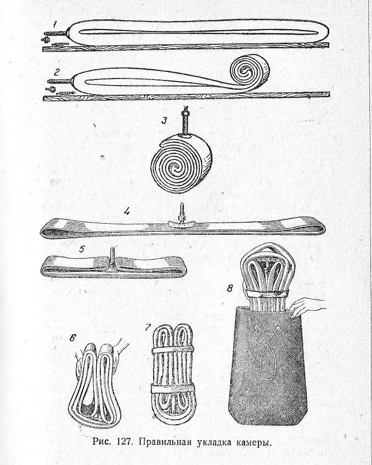 Камеры были свёрнуты хитрым способом, предотвращающим образование трещин в местах перегиба, и помещены в парусиновые мешочки (отдельный для каждой камеры).