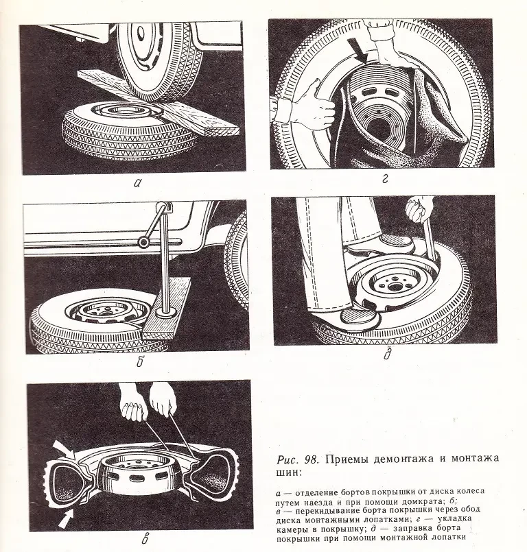 Подавляющее большинство советских шофёров имели дело только с камерными шинами и прекрасно знали, как снять покрышку, заклеить камеру («холодным» способом или методом горячей вулканизации) и вновь смонтировать колесо. А те, кто не усвоил эту премудрость на водительских курсах, могли изучить самостоятельно, прочитав пособия по ремонту автомобилей, выпускаемые в стране сотнями тысяч экз.