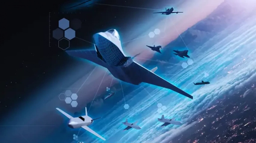 На рисунке от BAE Systems показан истребитель Tempest, работающий в составе сетевой команды вместе с Typhoon, F-35, E-7 Wedgetail и дронами типа «верный ведомый».