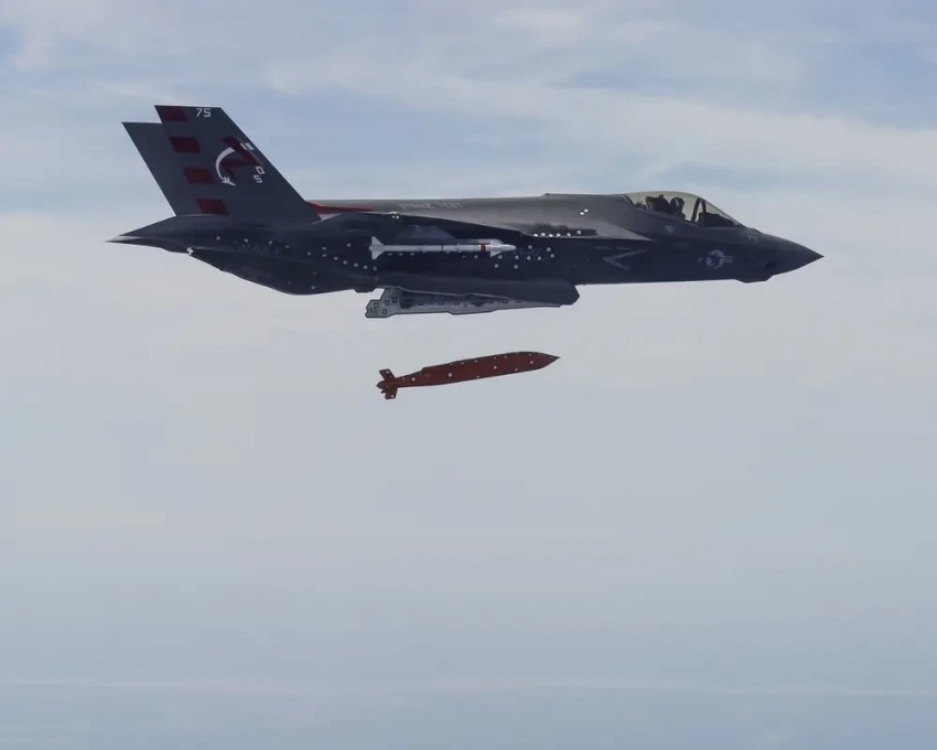 Истребитель F-35 сбрасывает бомбу AGM-154