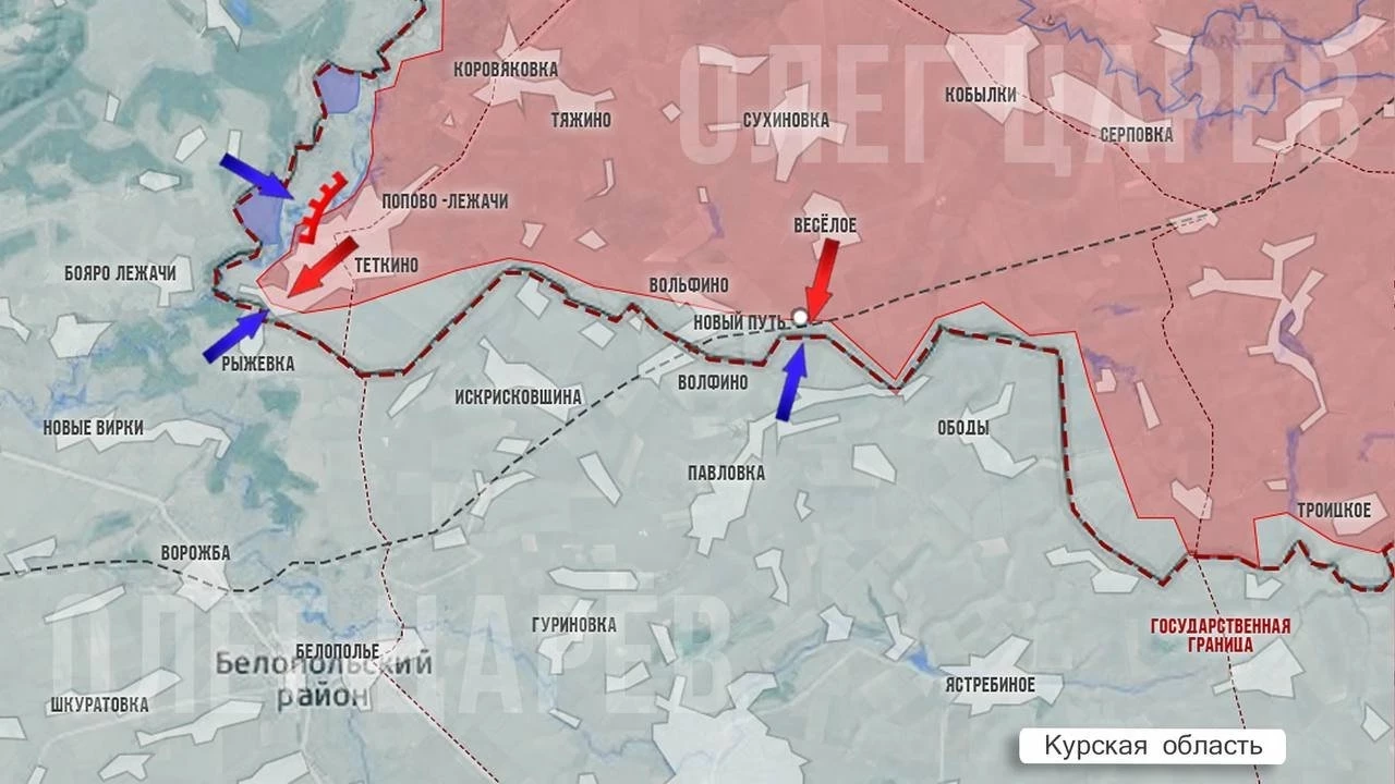 ВСУ продолжают попытки прорыва нашей границы в районе Тёткино на границе Сумской и Курской областей, пока особого успеха не достигли. Идут бои. Свои атаки ВСУ поддерживают огромным количеством дронов. Наши военные также наносят удары авиацией, артиллерией и беспилотниками.