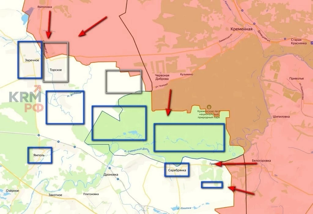 На Краснолиманском направлении южнее Нового ВС РФ продвинулись широким фронтом на 1,7 км в глубину в направлении на Липовое.