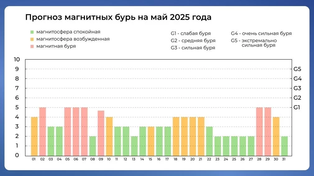 Прогноз магнитных бурь на май 2025 года: график