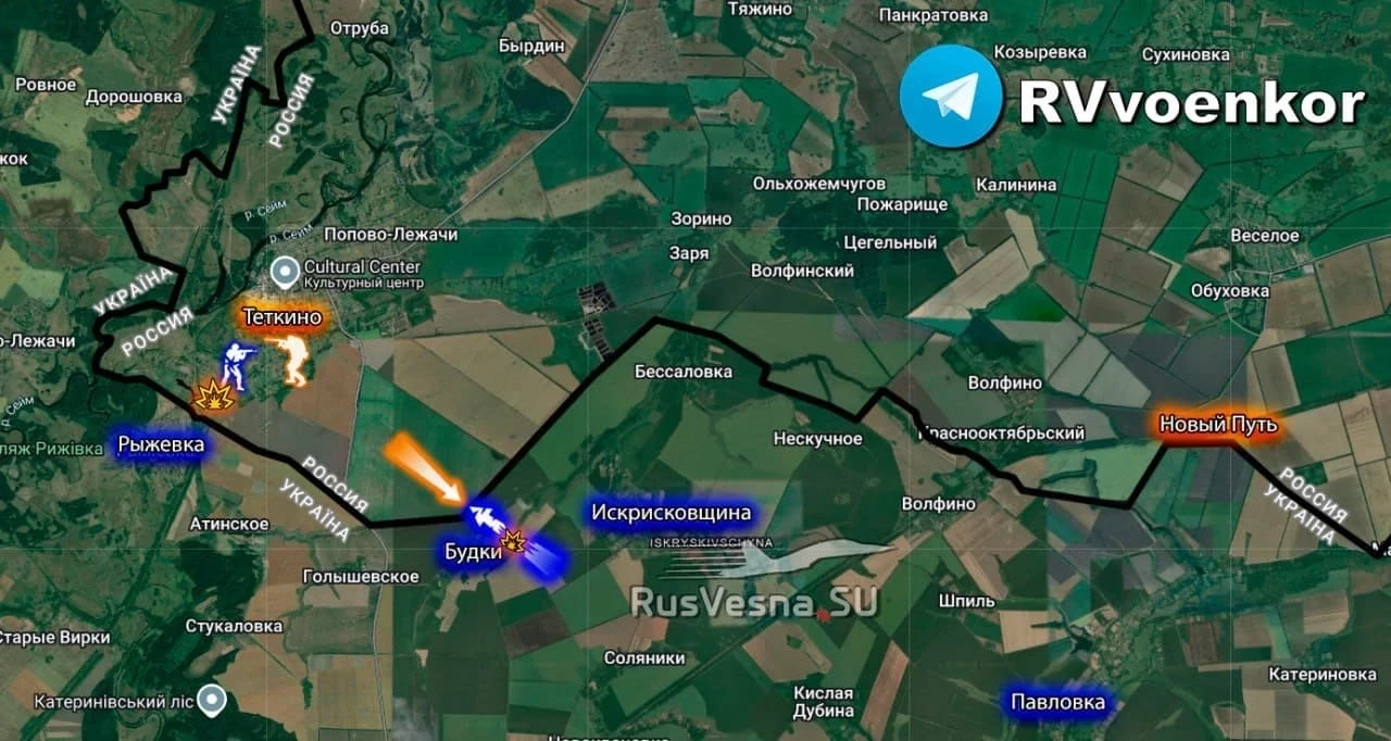 Квадроциклы и пехота ВСУ из Сумской области с утра снова и снова пытаются прорваться в Тёткино, на помощь остаткам засевших на окраине штурмовиков.
