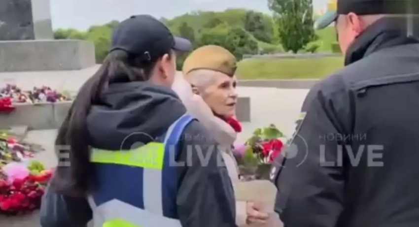 Главные новости » Эксклюзив » В Киеве полицейские задержали пенсионерку, которая 9 мая пришла возложить цветы в советской пилотке