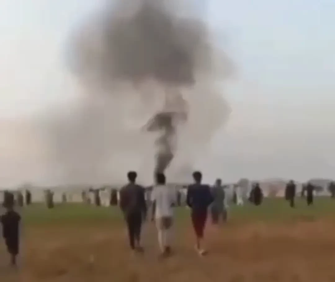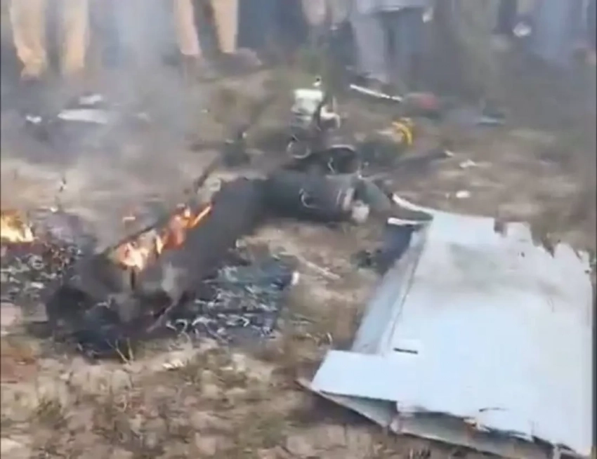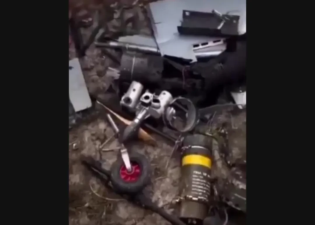 В комментариях к этим кадрам пишут, что это обломки сбитого пакистанскими средствами ПВО барражирующего боеприпаса, запущенного Индией. Это произошло в районе города Сиалкот на северо-востоке Пакистана близ границы с Индией.