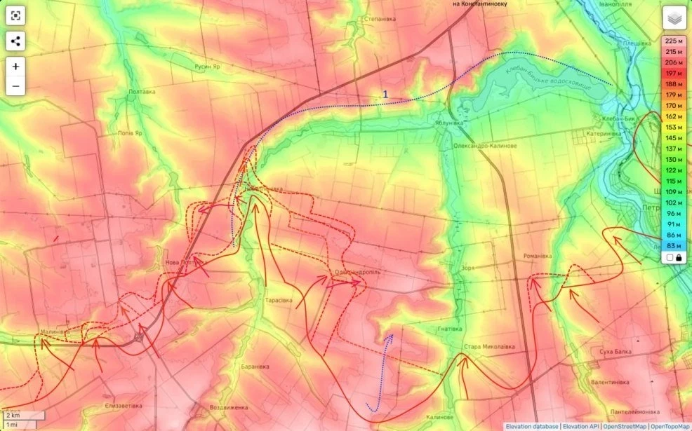 По данным источника, на Новопавловском направлении заметно продвижение южнее Серебряного, к югу от Константиновки – в районе Водяного Второго в ДНР. Между противоборствующими армиями завязались бои на трассе Покровск-Константиновка.