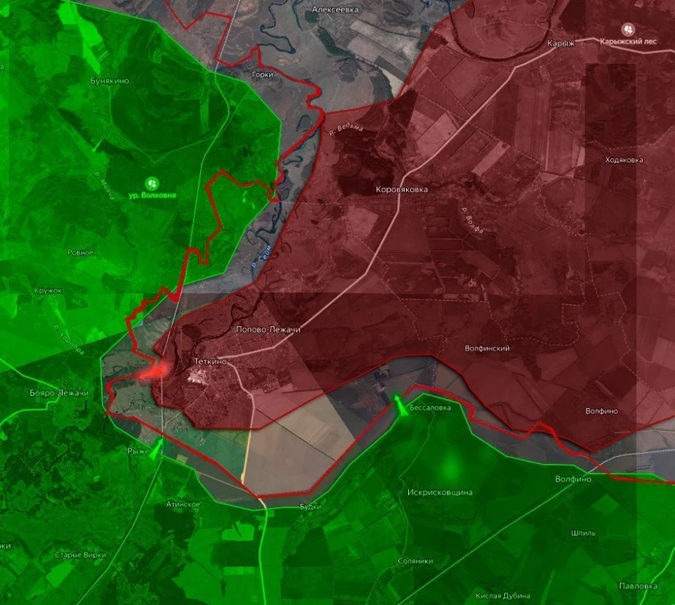 По мнению Telegram-канала "Два майора", ситуация возле Теткино остается сложной. Не обращая внимания на свои потери, ВСУ стараются изолировать район боевых действий, нарушить снабжение передовых российских подразделений ударами по мостам и переправам.