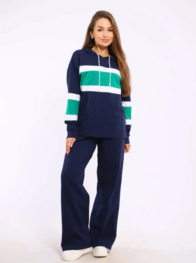 Спортивный костюм от IHOMELUX — универсальный выбор для активных и стильных женщин, заслуженно попадающий в рейтинг спортивных костюмов для женщин по качеству. Его ткань — это сбалансированное сочетание хлопка, полиэстера и эластана: дышит, не мнётся, не скатывается и быстро сохнет. Свободный крой с аккуратными манжетами на рукавах и штанинах обеспечивает комфорт при любом движении, а капюшон защитит от ветра в прохладную погоду. Комплект отлично подойдёт как для тренировок, так и для повседневной носки или домашнего уюта.