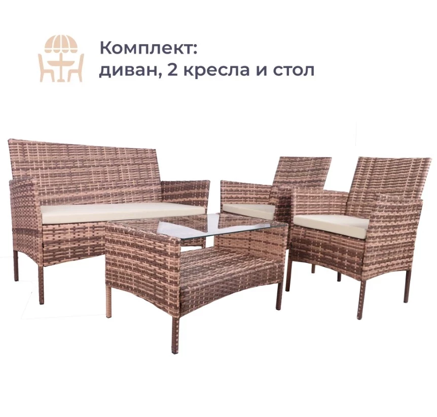Комплект мебели Homsly, искусственный ротанг, диван, 2 кресла, стол, стальной каркас, цвет Кофе с молоком, LFSR 311