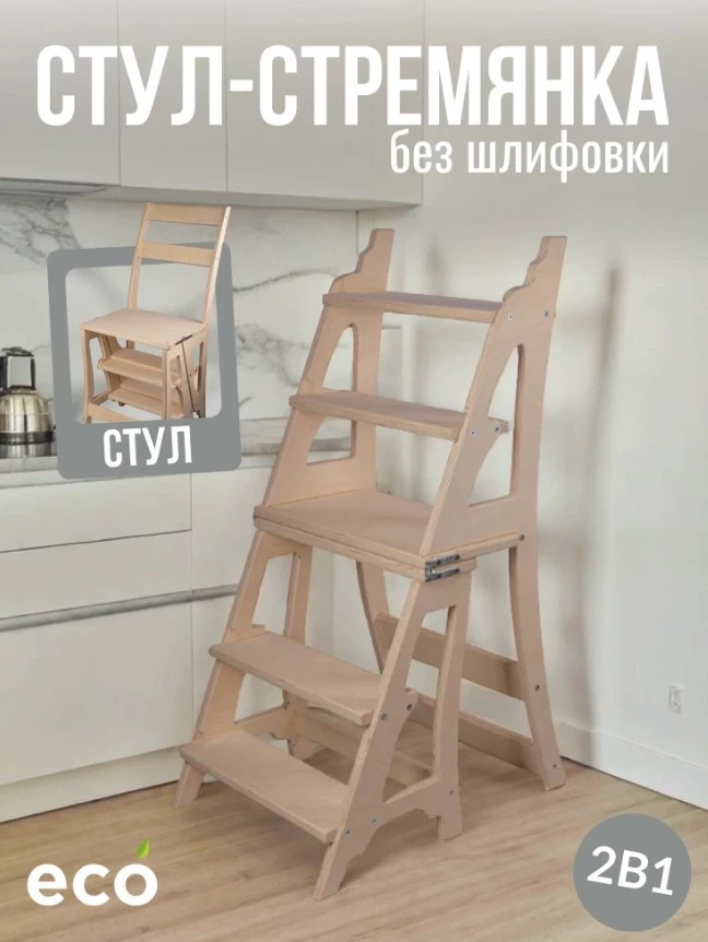 Деревянный стул-стремянка Кинг для дома и дачи, без шлифовки