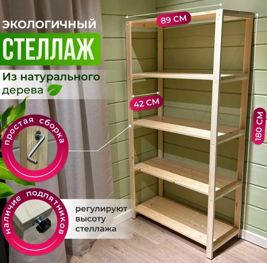 Стеллаж Stellife из натурального дерева — это идеальный выбор для организации пространства на балконе или в любом другом помещении. Изготовленный из высококачественной сосны, этот стеллаж не только экологичен, но и прочен: каждая полка выдерживает нагрузку до 50 кг, а общая нагрузка на конструкцию — до 250 кг. С его помощью легко упорядочить вещи, а регулируемые подпятники помогут выровнять стеллаж, даже если пол неровный. Стиль лофт и простота сборки делают его удобным и практичным решением для любого интерьера.