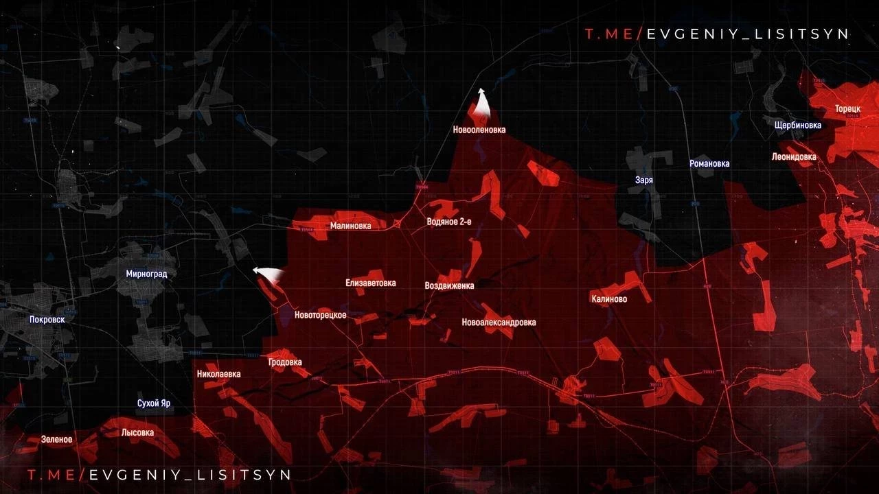 На Покровском направлении фиксируются ожесточённые столкновения на рубеже с Днепропетровской областью. В районе Миролюбовки и Малиновки идёт выравнивание линии фронта. Ударом дронов уничтожен склад с боеприпасами в Золотом Колодезе. Есть попадания по трассе Краматорск–Доброполье, сообщает в своём Telegram-канале военкор Евгений Лисицын.