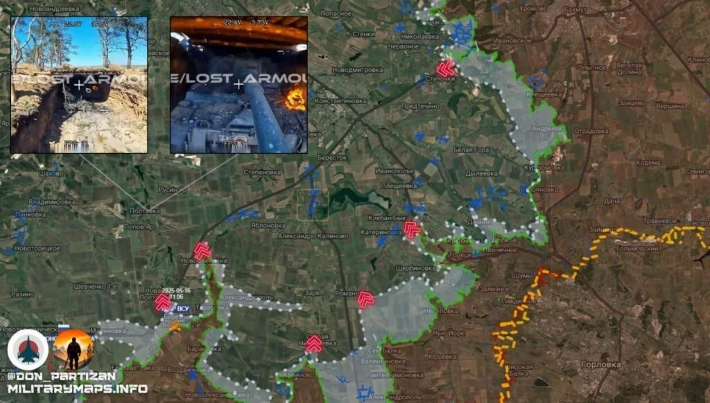 На Торецком направлении российские штурмовые группы вышли к Новой Полтавке и южной окраине Яблоновки. Продвижение продолжается в сторону Зари. Есть тактические успехи в Романовке и Старой Николаевке.