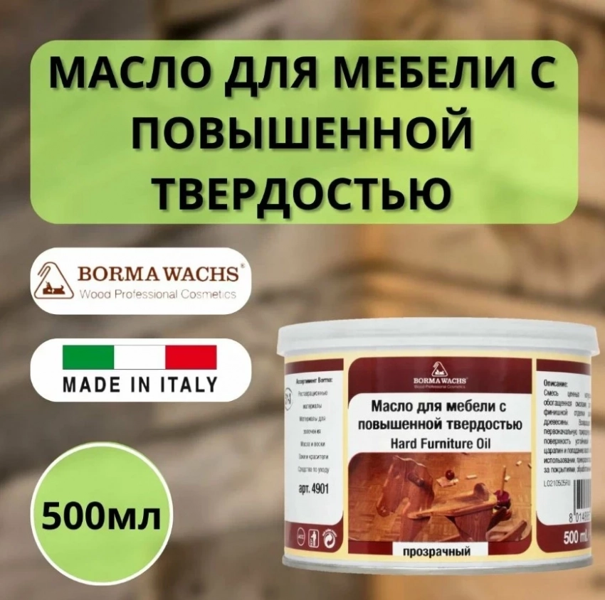 Масло для дерева BORMA HARD FURNITURE твердое для мебели 500мл 4901