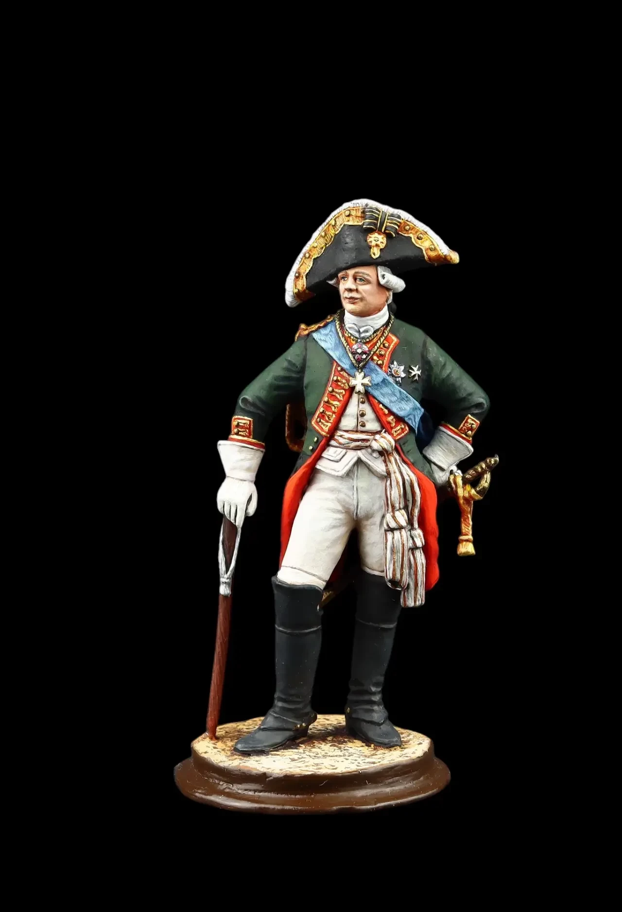 А. В. Суворов – выдающийся российский полководец, генералиссимус, князь Италийский граф Суворов-Рымникский, 1799 г. Таким обычно его и принято изображать. Вот только в Итальянском походе Суворов носил мундир белого цвета и красные штаны, то есть мундир австрийского генерала, и, однако, ничуть не смущался, что носит мундир своих союзников. Производители: «Silver Dream Studio» и «EK Castings»
