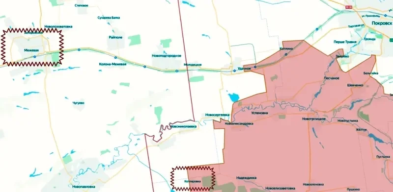 Именно Межевая упомянута вражеским офицером наверняка потому, что через этот населенный пункт проходят трасса и железная дорога, есть ж/д станция, которые наверняка используются ВСУ для снабжения на данном участке. Соответственно, по радиусу под ударами наших FPV-дронов, да и артиллерии, теперь вся логистика противника вдоль границы уже в Днепропетровской области. Кроме того, это южный фланг по отношению к Покровску (Константиновке).