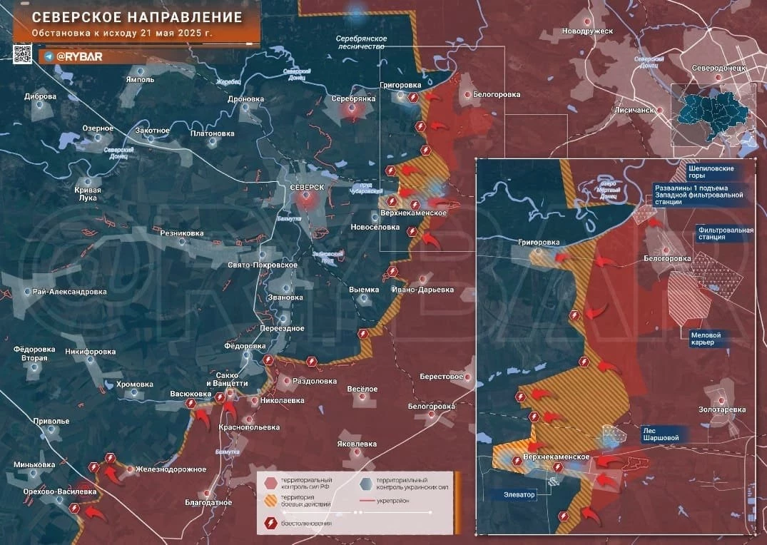 На Северском направлении сообщают о продвижении в Григоровке. В районе Верхнекаменского,ВС РФ сумели выдавить противника с позиций в большей части села, однако ВСУ используют артиллерию и дроны, чтобы не дать закрепиться в селе нашим войскам.