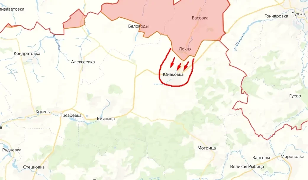 Согласно сообщениям, опубликованным украинскими околовоенными пабликами, ВС РФ вошли в поселок Юнаковка в Сумской области.