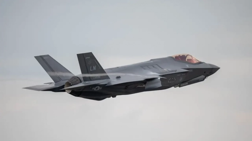 Американский истребитель F-35A Lightning II, приписанный к 48-му истребительному авиакрылу, совершает полёт во время учений Agile Shield на базе ВВС Великобритании в Мархэме, Англия, 4 сентября 2024 года