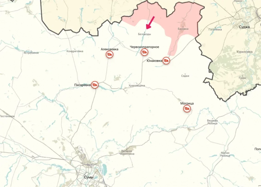 Сообщается, что наши силы из группировки войск «Север» постепенно продвигаются в направлении областного центра города Сумы, расположенного примерно в 30 километрах от российской границы. В частности, бойцы 83-й гвардейской десантной бригады выбили боевиков ВСУ из с. Беловоды. Чуть раньше ВС России освободили населённый пункт Локня и вошли в Юнаковку в том же районе области.