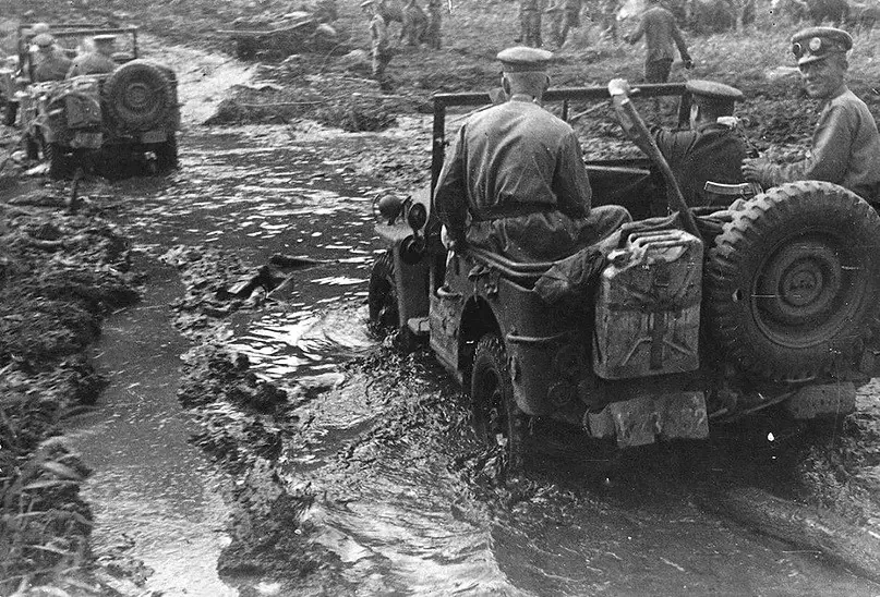А там, где имелась накатанная колея, можно было поставить колеса бортов так, чтобы они шли между колей грузовиков, или вообще ехать по обочине, что узкая колея «джипов» позволяла сделать.