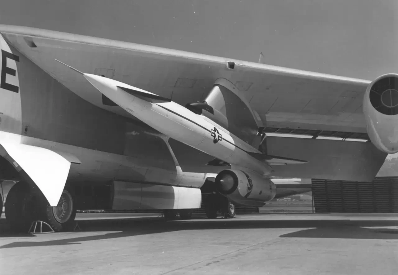 Фото 2. Ракета AGM-28 Hound Dog под крылом B-52. Огромные размеры Hound Dog ограничивали мощный B-52 нагрузкой всего в 2 ракеты, что серьезно ограничивало возможности SAC по нейтрализации советских систем ПВО.
