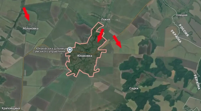 На текущий момент украинская армия потеряла контроль над восточной частью Юнаковки – на левом берегу реки Локня.
