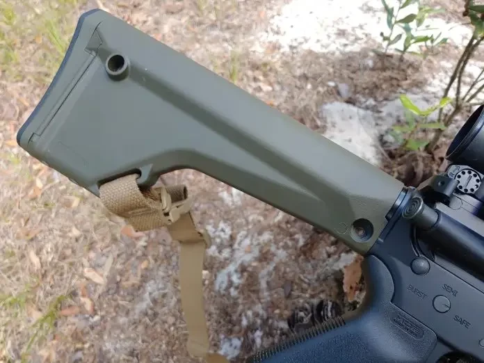 AR-15 со стволом в 20 дюймов. Цевьё и приклад из пластмассы фирмы «Магпул»