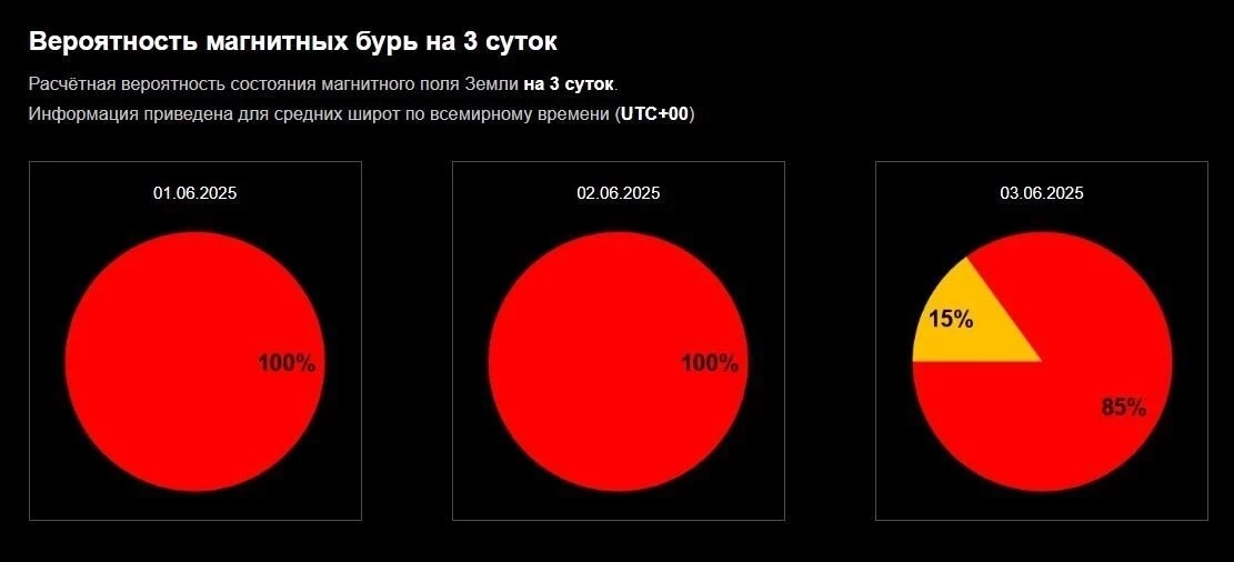 Магнитные бури с 1 по 3 июня 2025 года: прогноз по дням