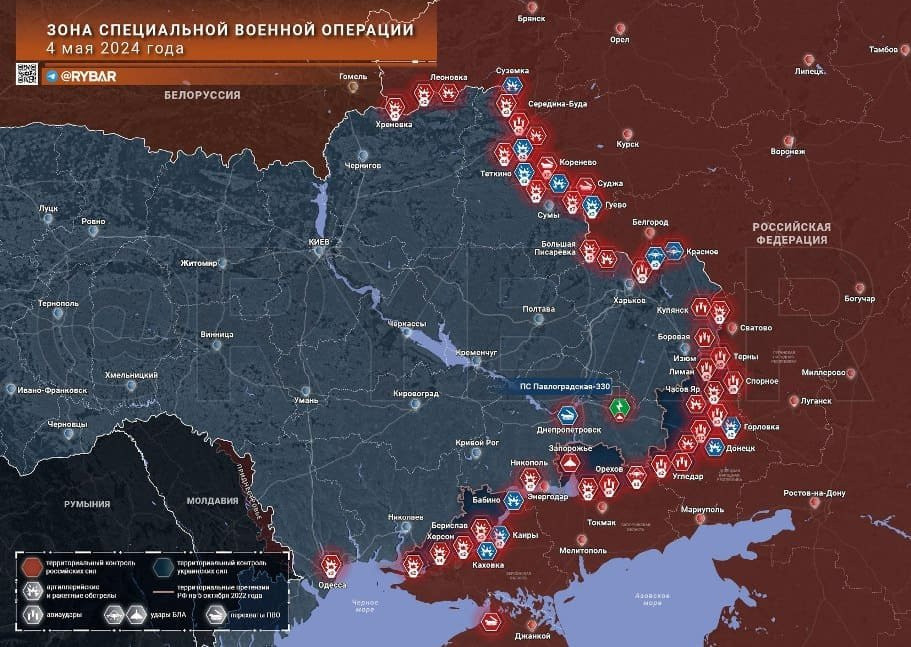 Последние новости СВО 5 мая 2024. Карта боевых действий на Украине на сегодня, военная сводка
