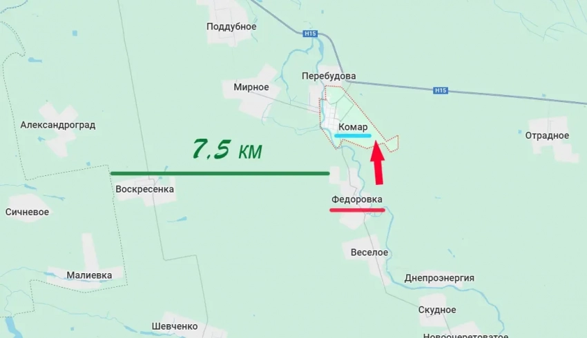 Противник превратил Комар ещё и в укрепрайон, задача которого – сдержать продвижение наших войск к границе Днепропетровской области на этом участке фронта. Но после освобождения Вооружёнными силами России Фёдоровки это значение Комара фактически утратило свой смысл, так как основная часть Фёдоровки находится западнее реки Мокрые Ялы, а значит ВС РФ, по большому счёту, и без взятия под контроль села Комар могут двигаться к той самой границе Днепропетровщины. До неё на данном направлении примерно 7,5 км.