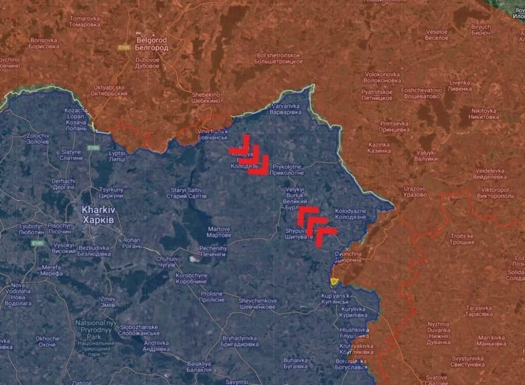 На Купянском направлении ВС РФ продвинулись по лесам к северу от Двуречной примерно на 3км. Южнее Купянска наши взорвали два моста через Оскол.