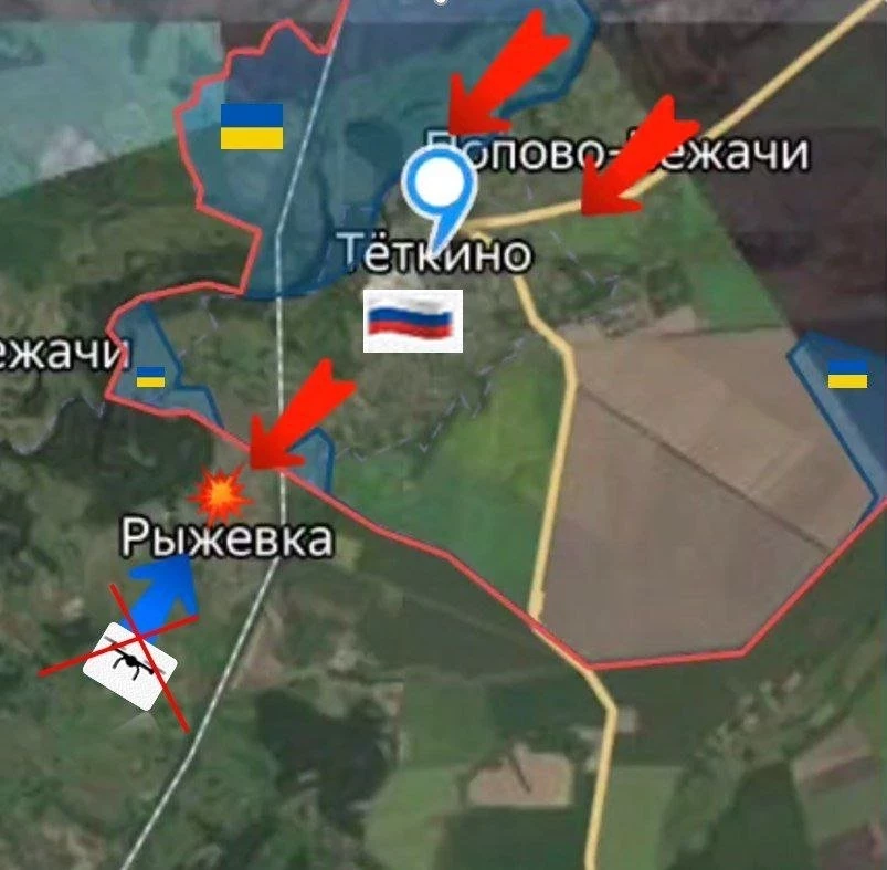 В Курской области противник продолжает попытки прорыва на территорию РФ. Наши провели ротацию и усиление в с. Тёткино. Сейчас идут попытки ВС РФ войти в с. Рыжевка. ВСУ сосредоточились в паре домов в селе. Ситуация сложная. Пешие группы оккупантов при поддержке дронов ежедневно упорно ищут и находят свою гибель на Тёткинском и Глушковском направлениях.