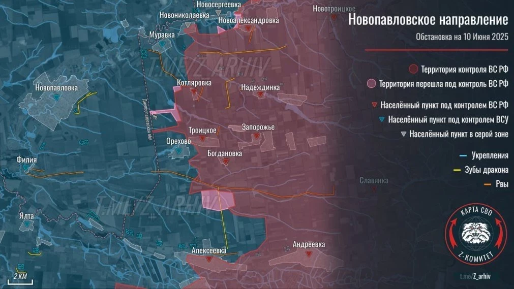 На Новопавловском направлении бойцы Вооружённых сил России продвигаются возле Котляровки, Новосергеевки и Алексеевки, сообщает Telegram-канал "Z комитет".