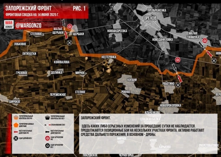 Карта боевых действий на Украине. Последние данные на 14.06.2025