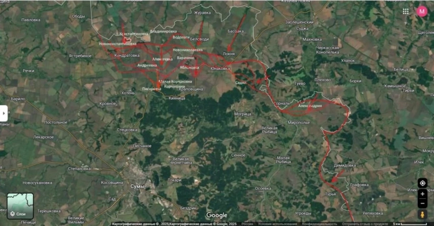 Юрий Подоляка в свежей сводке от 15.06.2025 сообщил о том, что ВС РФ находятся в 15 км от Сум и наступают