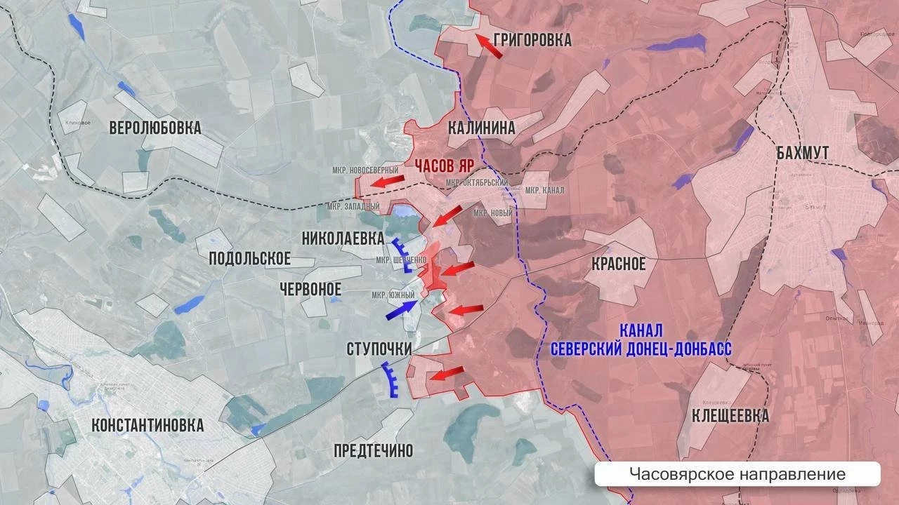 Из Часов Яра сообщают о продвижении наших войск пределах города. В районе Ступочек противник сопротивляется, копит пехоту в Предтечино, пытается подвозить боеприпасы. Наши работают по вражеской логистике.