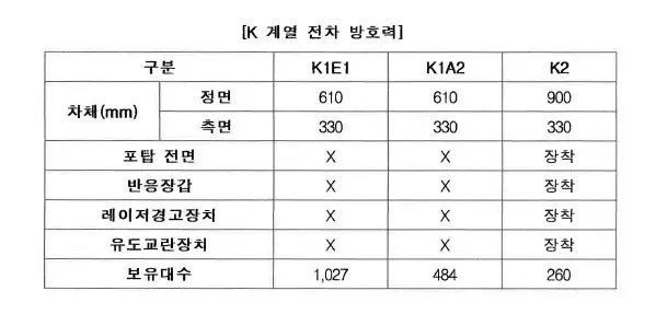 Сами корейцы оценивают противокумулятивную стойкость лобовой брони танка К2 в районе 900 миллиметров стального эквивалента без учёта дополнительной защиты (с ДЗ, например, будет ещё больше). Этого полностью хватает для защиты от абсолютно всех кумулятивных снарядов ствольной артиллерии любого калибра, в том числе танковых 120-125 мм боеприпасов. То же самое и с моноблочными противотанковыми ракетами — ни одна его в лоб пробить не сможет.