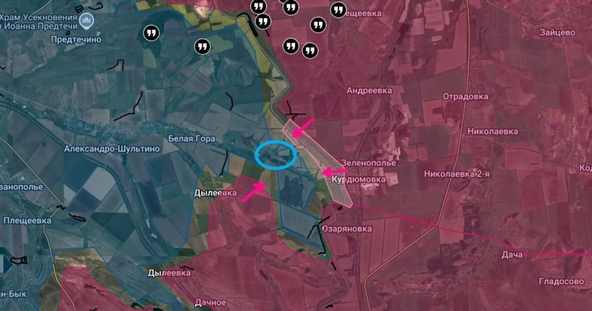 На Лиманском направлении российские бойцы не снижают темпы наступления. В частности, в их первоочередную задачу, как указывают военные блогеры, входит окружение населённого пункта Зелёная Долина и последующий выход к Новому Миру.