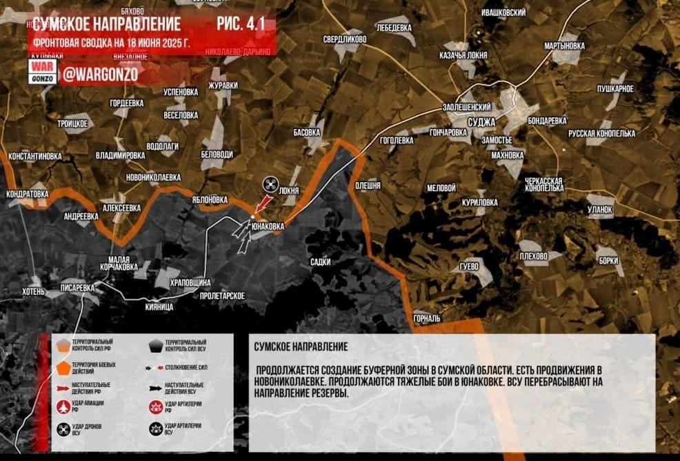 ВС РФ в тяжёлых боях выбили противника из Новониколаевки на Сумском направлении: свежие данные на 19.06.2025