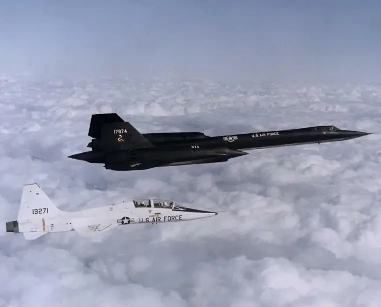 Фото 7. Blackbird с/н 61-7974 Ichiban с изображением Habu, обернутым вокруг красной цифры 1, летит с Northrop T-38. Самолет вылетел с Окинавы, а Ichiban означает «номер 1» на местном наречии японского языка.