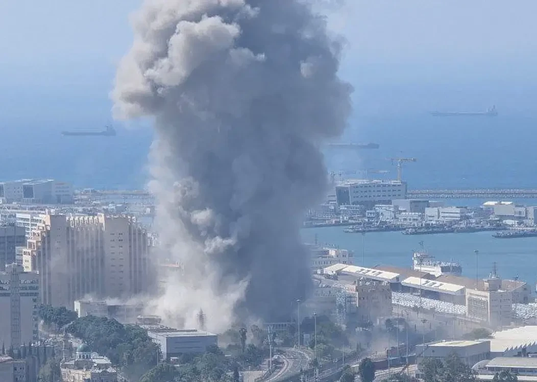 Между тем, появилось фото прилёта в Хайфе. В подписи к посту говорится, что взрыв произошел в районе порта.