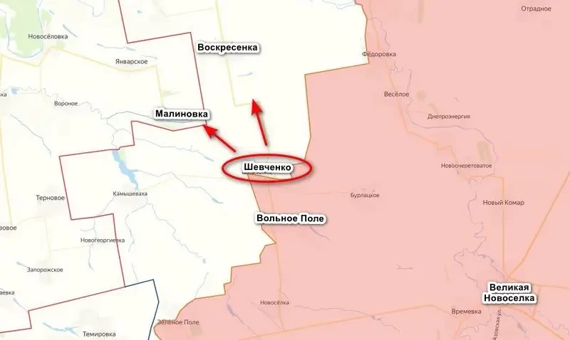 Хорошие новости приходят сегодня с Велико-Новоселовского направления. Вслед за селом Ялта бойцами группировки «Восток» освобождено село Шевченко к северо-западу от Великой Новоселки, за которое ожесточенные бои шли длительное время.
