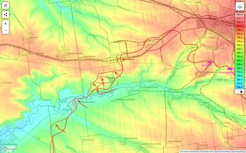 На севере участка наши части продвинулись юго-западнее Муравки, очевидно пытаясь отрезать её гарнизон от остальных частей ВСУ.