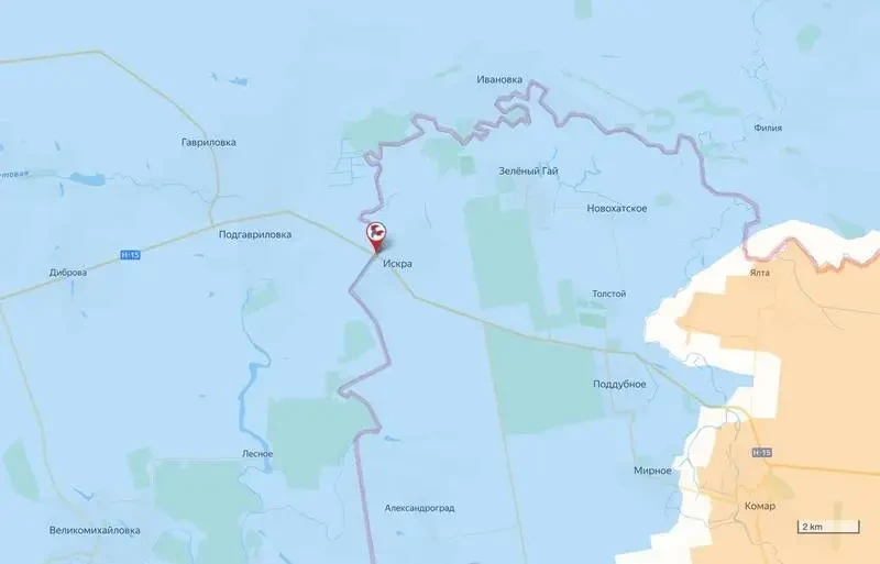 Российские войска продолжают наступать на западе ДНР, зачищая от противника оставшуюся территорию на Велико-Новоселовском направлении. Продвижение штурмовых подразделений группировки войск «Восток» идет к границе с Днепропетровской областью, нашим осталось взять несколько населенных пунктов, все еще контролируемых противником. Граница между ДНР и Днепропетровской областью здесь проходит по реке Волчья, а мост располагается в селе Искра.