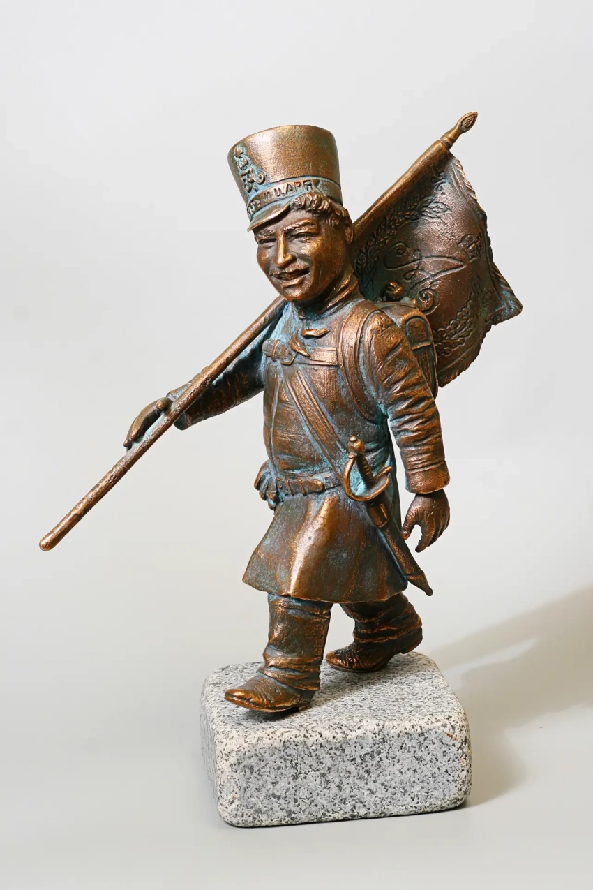 А вот это тоже фигурка ратника Пензенского ополчения, только отлита из бронзы, и это уже не «солдатик», а самая настоящая скульптура пензенского скульптора Германа Феоктистова. Называется «Молитва ополченца». Ну а то, что молились ополченцы постоянно и очень часто, известно очень хорошо. Крестьянам ведь с детства вбивали в головы, что «за царем служба, а за богом молитва не пропадают!»