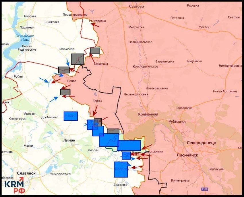 На Купянско-Лиманском направлении российские войска ведут зачистку Радьковки, расширили контроль территории в Карповке, отмечаются интенсивные боестолкновения в районе Зелёной Долины.
