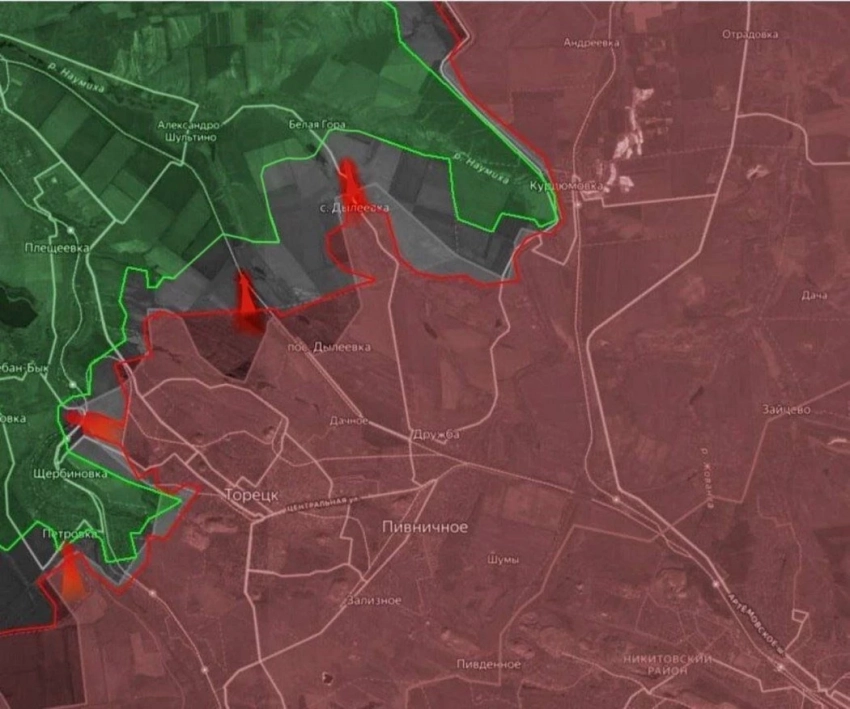 На Северском направлении ВС РФ ведут штурмовые действия в Серебрянке, продвинулись южнее Григоровки, а также на северо-восточной окраине Северска.