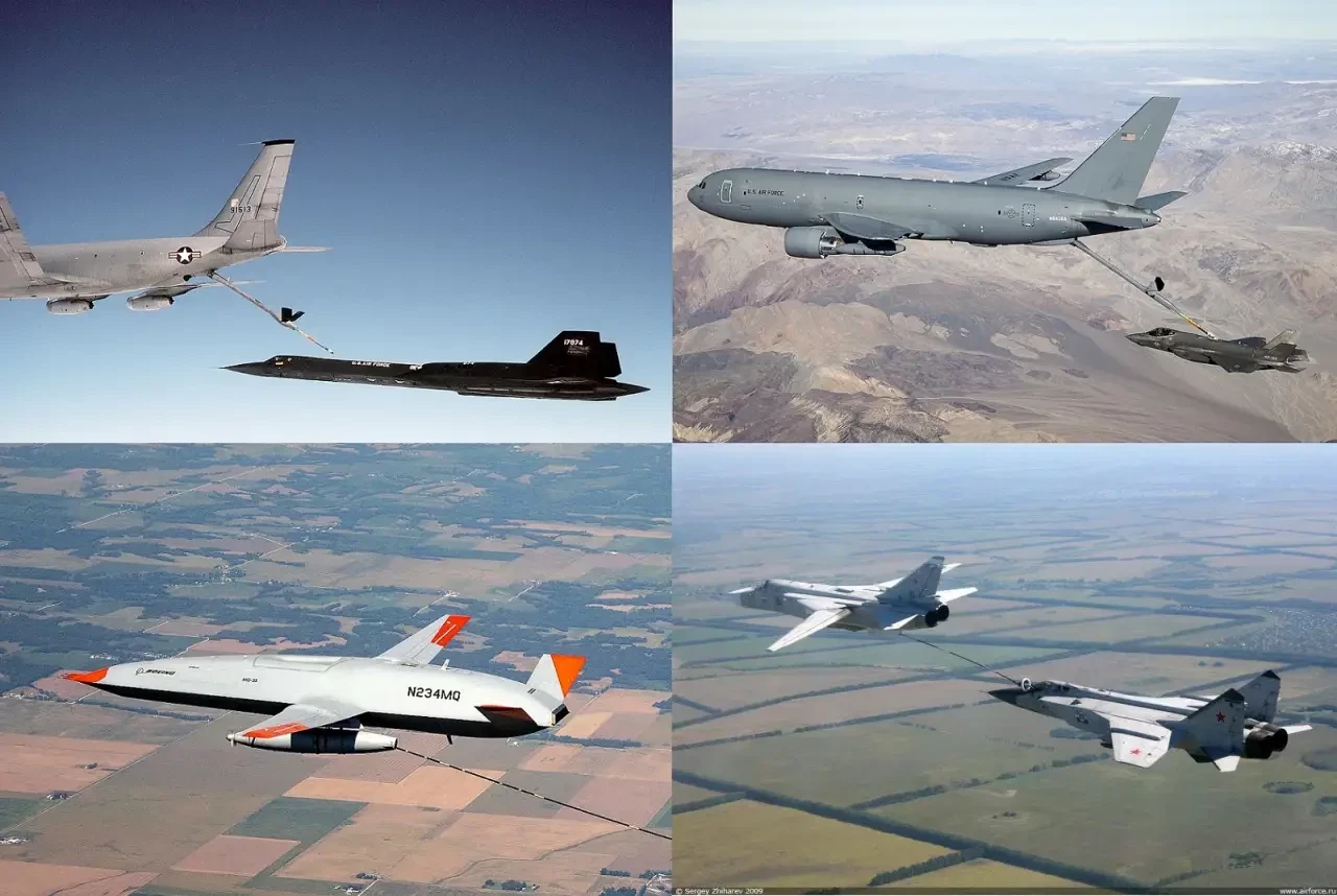 Boeing KC-135 заправляет SR-71, Boeing KC-46 Pegasus заправляет F-35, БПЛА-заправщик MQ-25A Stingray и дозаправка МиГ-31 от Су-24